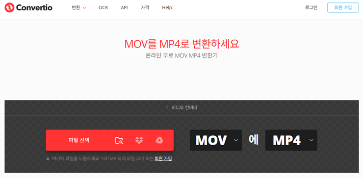 | Convertio | O | 100MB | 쉬운 사용법, 한글 UI | Convertio |